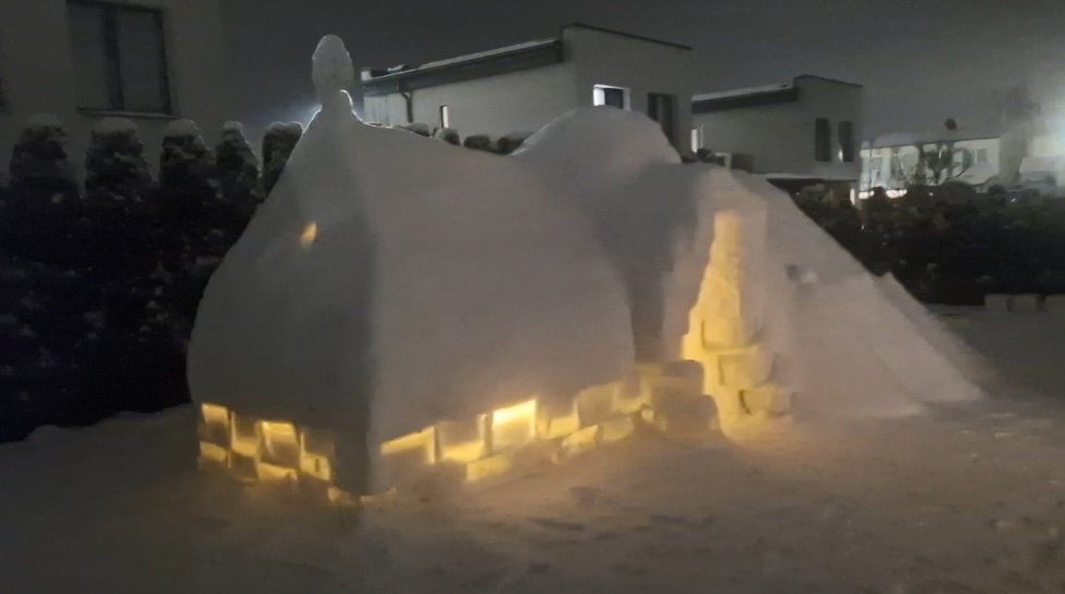 Kauno rajone iškilo unikali bažnyčia iš sniego ir ledo. Tokį žiemišką kūrinį savame kieme surentė Vytis Lasys, ne pirmus metus džiuginantis objektais iš sniego. Šį kartą darbavosi kelias dienas, o sniegą sutempė iš visos gatvelės.
